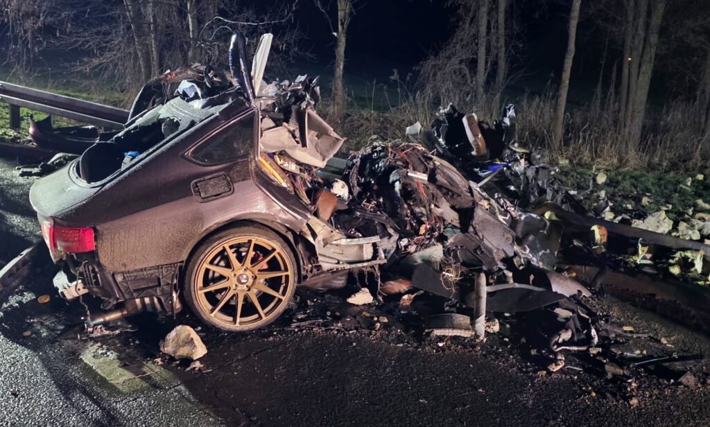 Kierujący samochodem Audi A5 wypadł z drogi i uderzył w murowany przystanek autobusowy. Siła uderzenia była tak duża, iż osobówka została całkowicie zniszczona, tak samo przystanek.