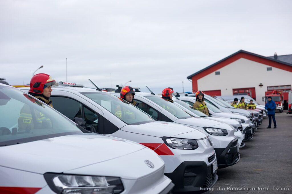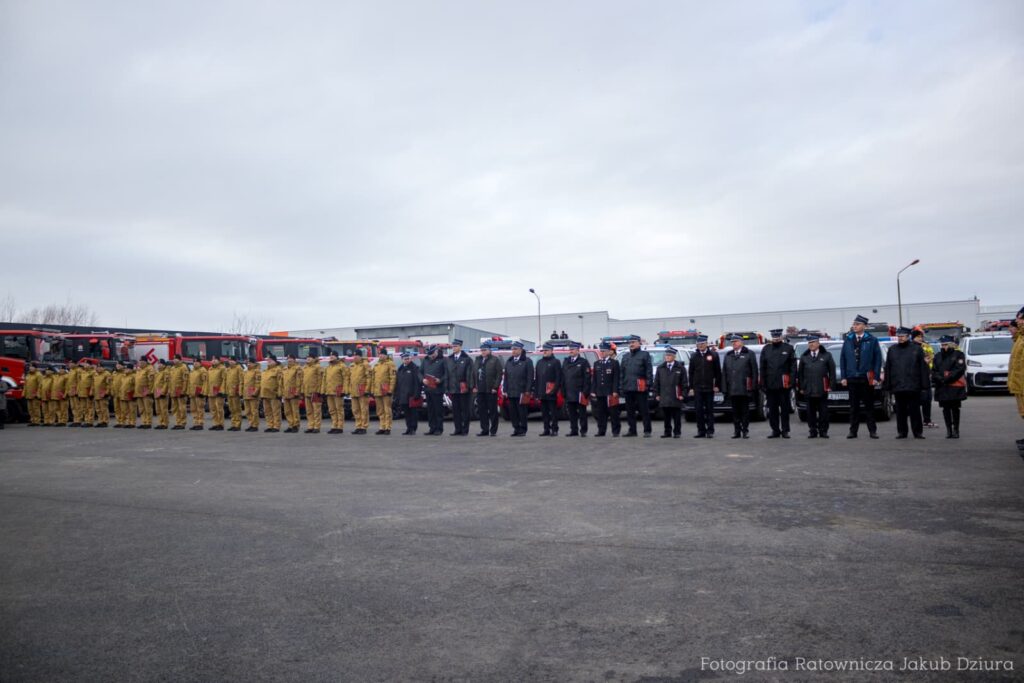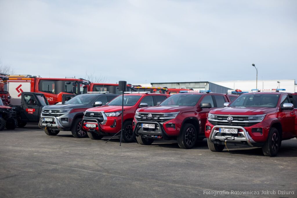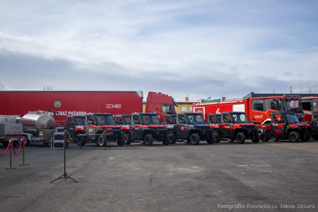 Na placu Komendy Powiatowej PSP w Jarosławiu pojawił najróżniejszy sprzęt, w tym średnie i ciężkie samochody ratowniczo – gaśnicze, samochody operacyjne i kwatermistrzowskie, pojazdy UTV, kontenery, nośnik kontenerów, ładowarki teleskopowe, ciągnik siodłowy z naczepą, zestawy hydraulicznych narzędzi ratowniczych, pompy, zestawy oświetleniowe, agregaty prądotwórcze, kuchnie polowe i drobniejszy sprzęt zakupiony w ramach doposażenia baz magazynowych. Były również samochody ratowniczo – gaśnicze zakupione w ubiegłym roku dla jednostek Ochotniczych Straży Pożarnych.