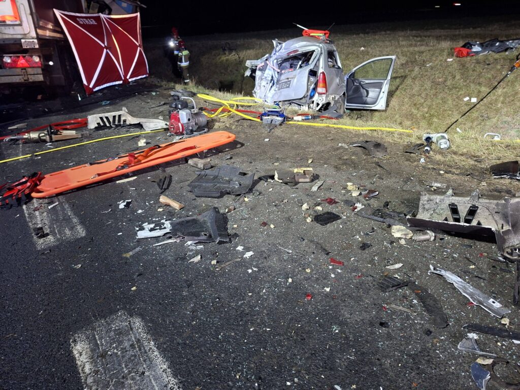 Na miejscu zginęły dwie osoby podróżujące osobówką. To 58-letni kierowca i 94-letnia pasażerka. Do szpitala trafiła druga pasażerka, której stan określono jako ciężki. Pomocy wymagali również kierowcy ciężarówek.