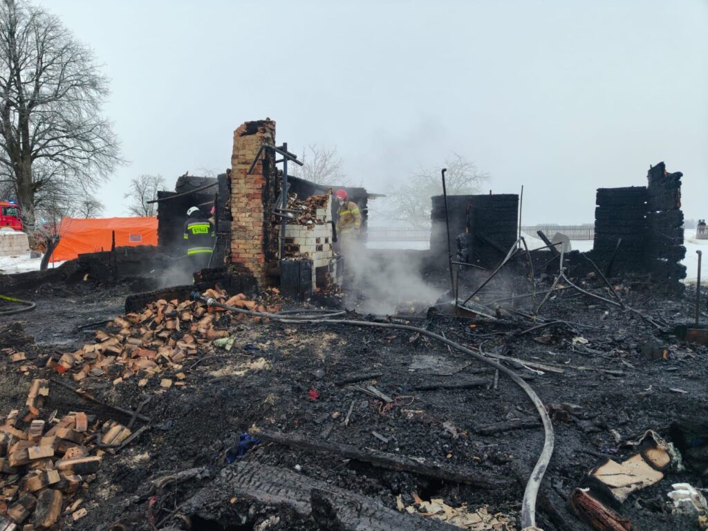 W chwili przybycia strażaków na miejsce zdarzenia drewniany, jednokondygnacyjny budynek mieszkalny całkowicie objęty był pożarem. Jego dach i część ścian była zawalona do wnętrza budynku – informuje straż pożarna.
