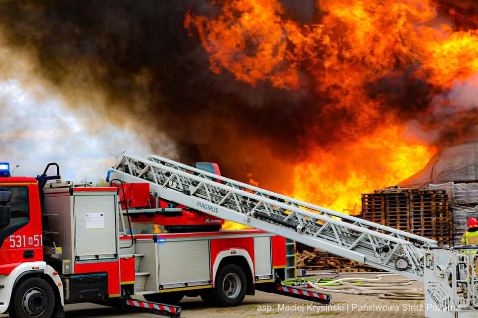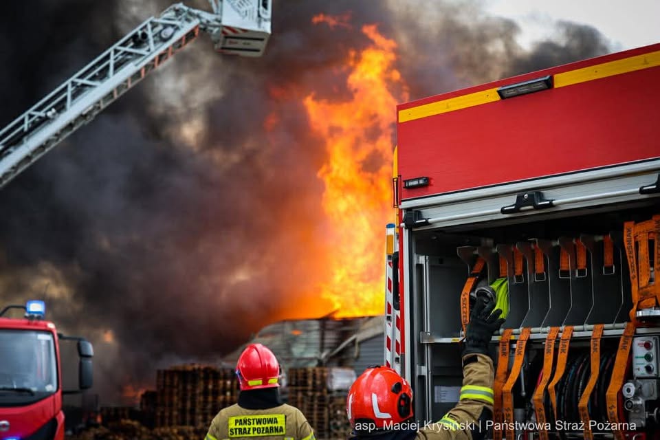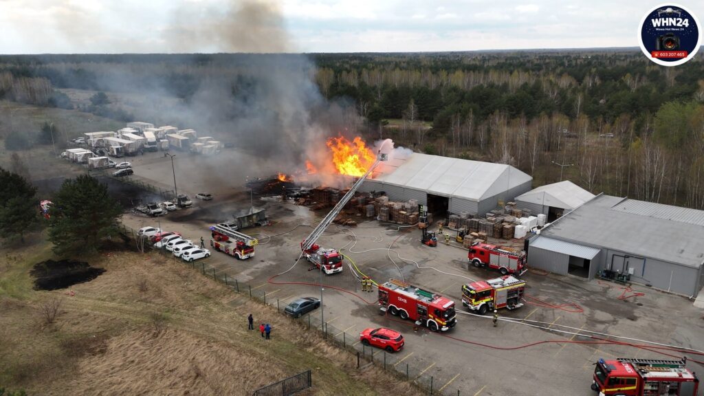 Kilkanaście zastępów straży pożarnej gasi pożar hali magazynowej w miejscowości Łomna w powiecie nowodworskim.