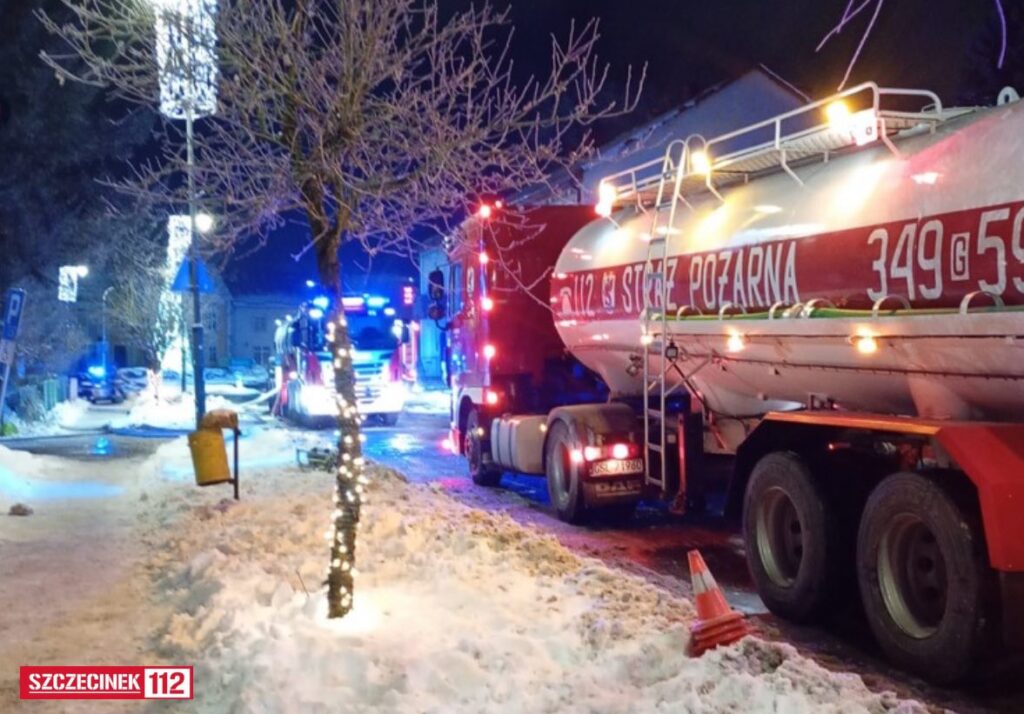 Dyżurny Stanowiska Kierowania Komendanta Miejskiego PSP w Koszalinie po godzinie 22 otrzymał zgłoszenie o pożarze sklepu przy ulicy Wolności w Polanowie.