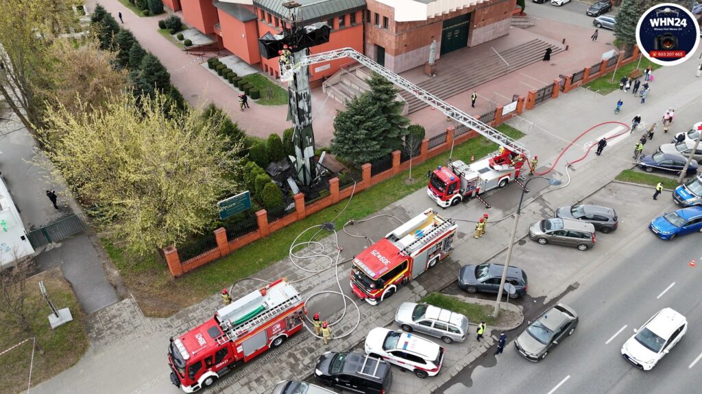 Na miejscu interweniowało pięć zastępów straży pożarnej, które gwałtownie ugasiły pożar 25-metrowego drewnianego krzyża, który był pokryty blachą.
