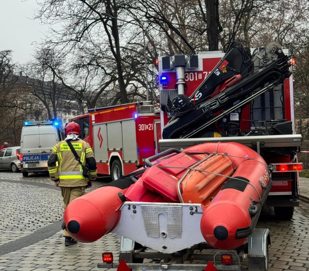 Zdarzenie miało miejsce po godzinie czternastej przy skrzyżowaniu ulic Podwale i Kołłątaja. Na miejsce zadysponowano zastępy z JRG 1 Wrocław, Specjalistyczną Grupę Ratownictwa Wodno-Nurkowego, Wodną Służbę Ratowniczą, WOPR, ZRM i Policję.