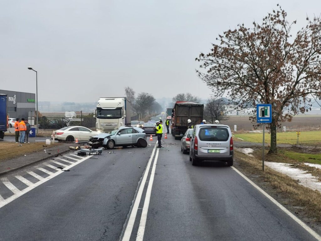 Ze wstępnych ustaleń policji wynika, iż 20-letni kierowca audi uderzył w tył naczepy ciężarówki, która skręcała na stację benzynową. W wyniku uderzenia osobówka przemieściła się na przeciwległy pas ruchu, gdzie doszło do zderzenia z drugą ciężarówką.