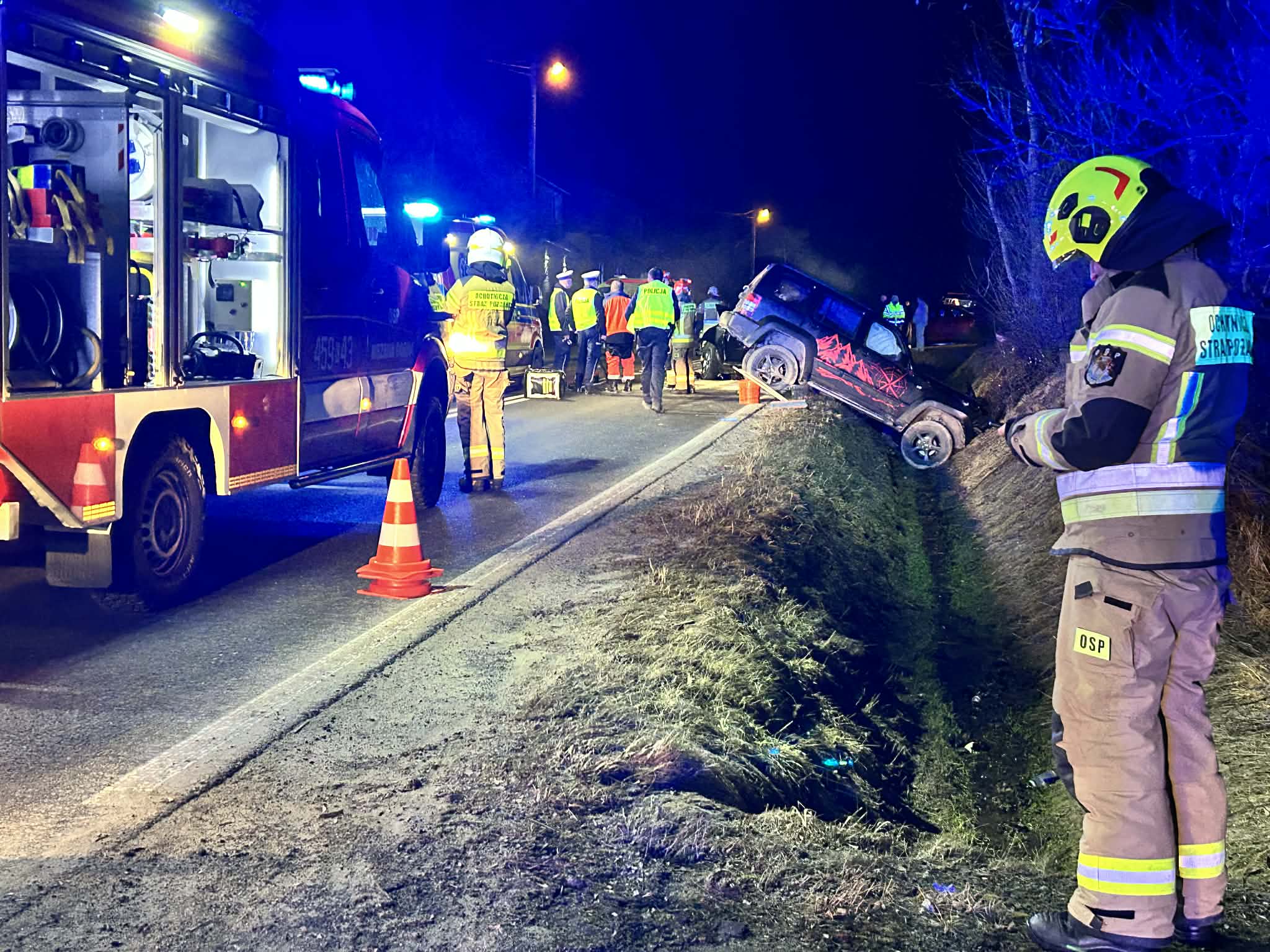 Służby prowadzą działania ratunkowe oraz zabezpieczają miejsce zdarzenia. Okoliczności wypadku będą wyjaśniane przez policję.