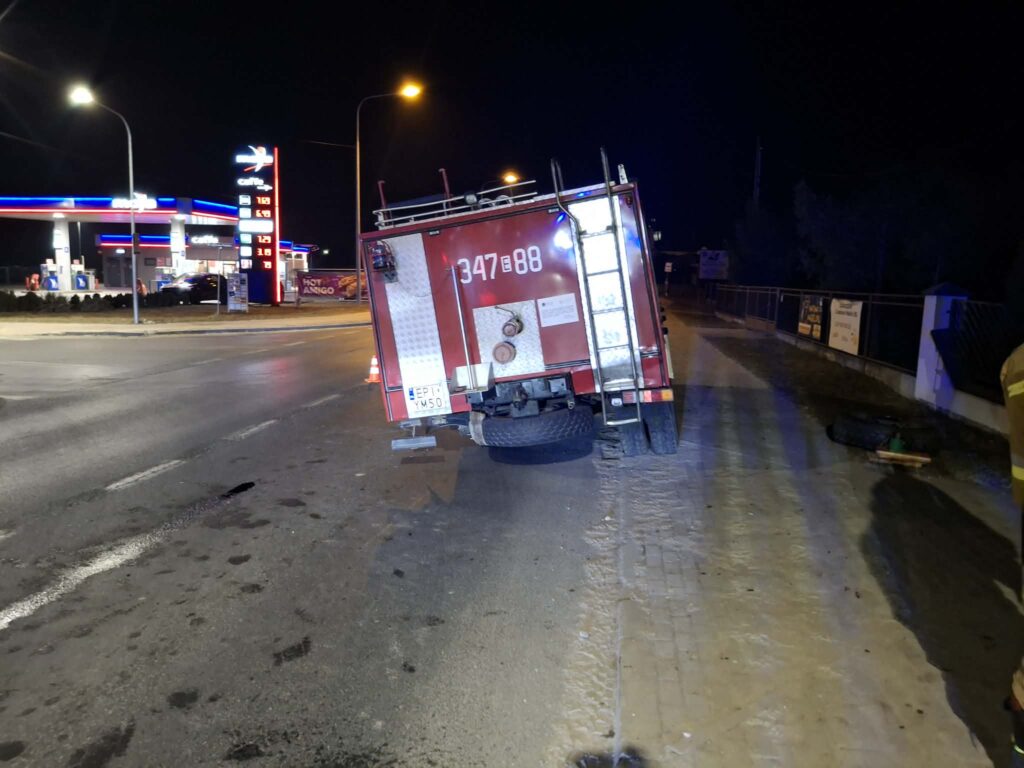 Do niecodziennego zdarzenia z udziałem wozu strażackiego doszło w piątek 13 marca w Rozprza w województwie łódzkim.