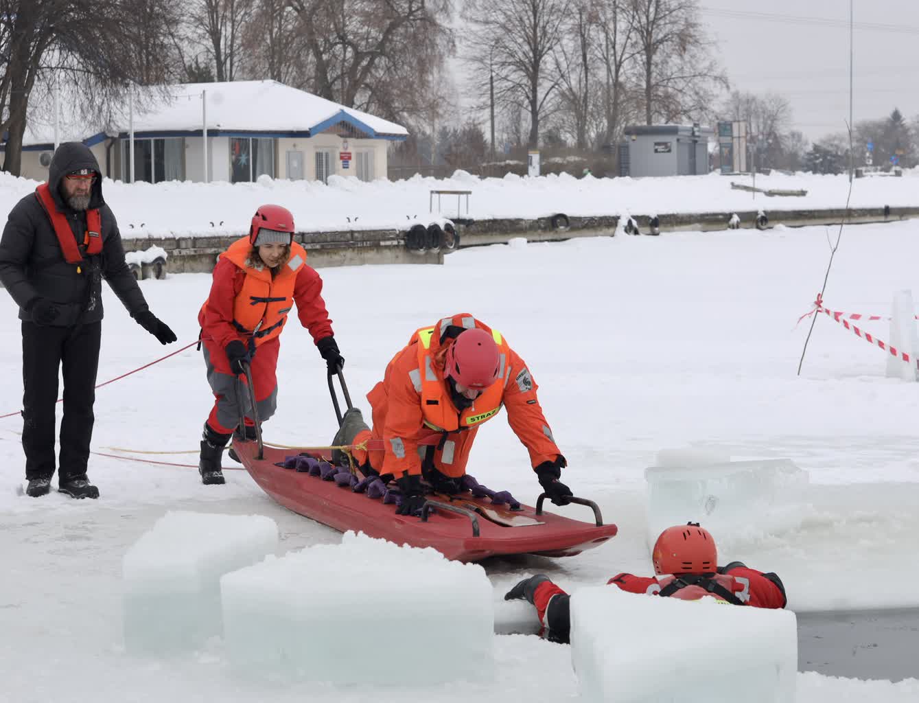 – Żadne zamarznięte jezioro nie jest bezpieczne, a gdy wpadniemy do lodowatej wody, zimno może nas zabić w kilkanaście minut – alarmują służby ratunkowe. W sobotę (24.01) nad Zalewem Zembrzyckim w Lublinie strażacy, policjanci i WOPR-owcy szkolili się z ratowania osób, które wpadną do lodowatej wody.