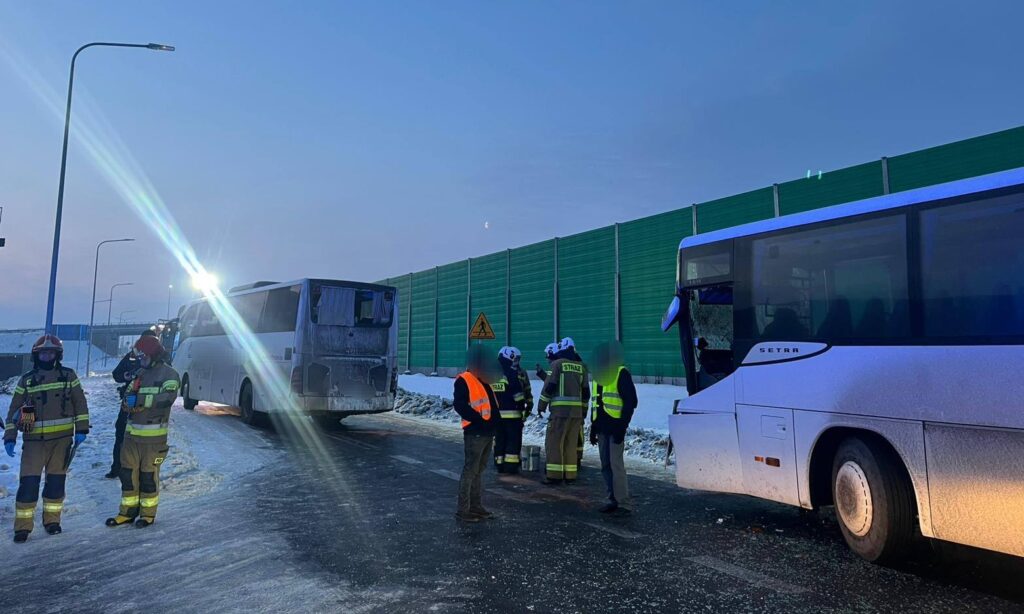 Dziesięć osób trafiło do szpitali po zderzeniu dwóch autokarów na lokalnej drodze w pobliżu Kroczewa w powiecie płońskim.