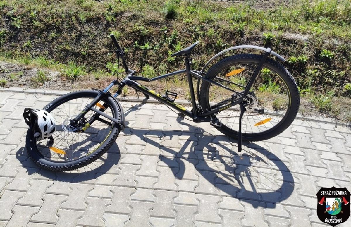 Motocykl suzuki 25-latka; fot. OSP Bojszowy– W efekcie, zarówno motocyklista, jak i rowerzysta doznali obrażeń ciała w postaci złamań – mówi asp. Katarzyna Szewczyk.