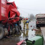 – Po dojeździe, strażacy uwolnili zakleszczonego kierowcę ciężarówki i przekazali go ratownikom medycznym – dodaje.