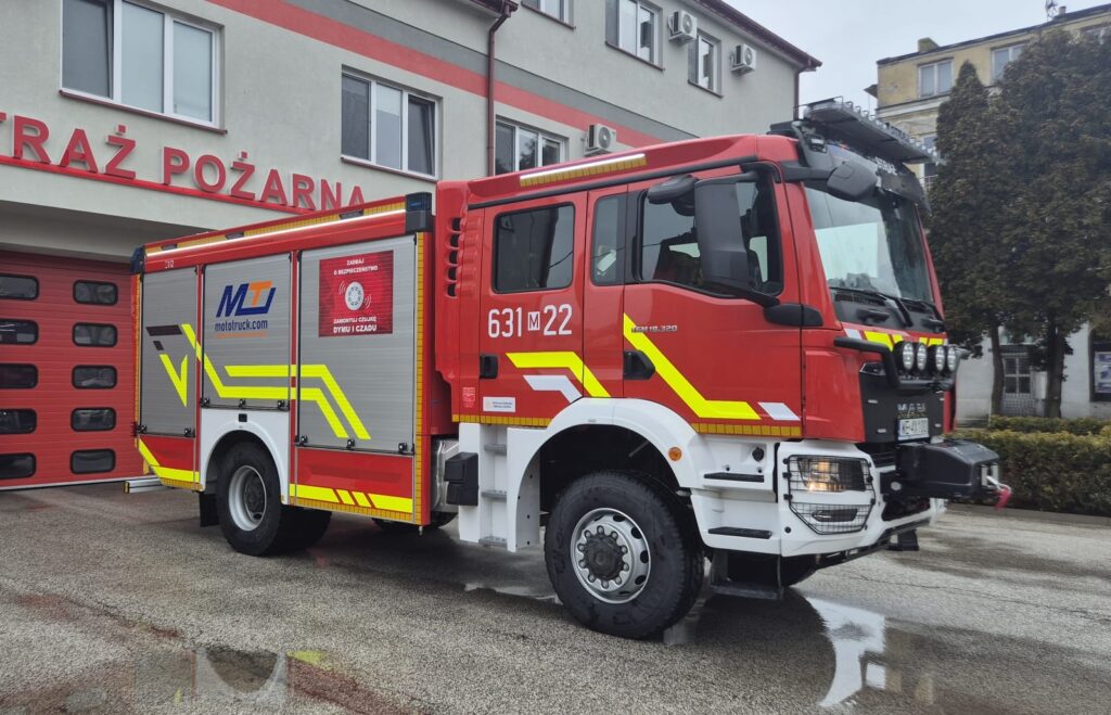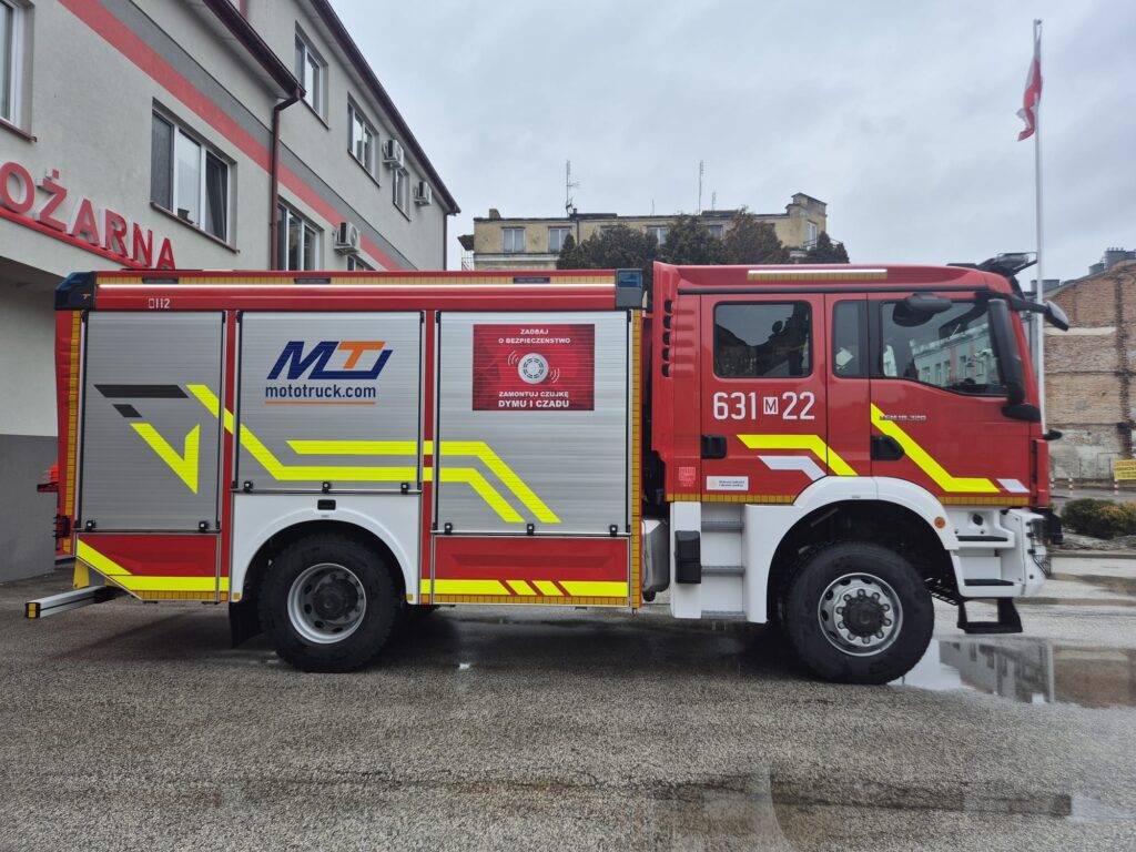 Pierwszy nowy wóz to średni samochód ratowniczo – gaśniczy typu GBA 3/16 zabudowany przez firmę Moto-Truck na podwoziu MAN TGM 18.320. Kosztował blisko 1,4 mln zł i zastąpił średnią Scanię P360, która służyła strażakom od 2015 roku.